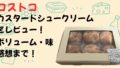 コストコで話題の「カスタードシュークリーム」を実食レビュー!サクサク食感の生地にカスタードクリームがぎっしり。値段・味・食べ方など、詳しく紹介します。